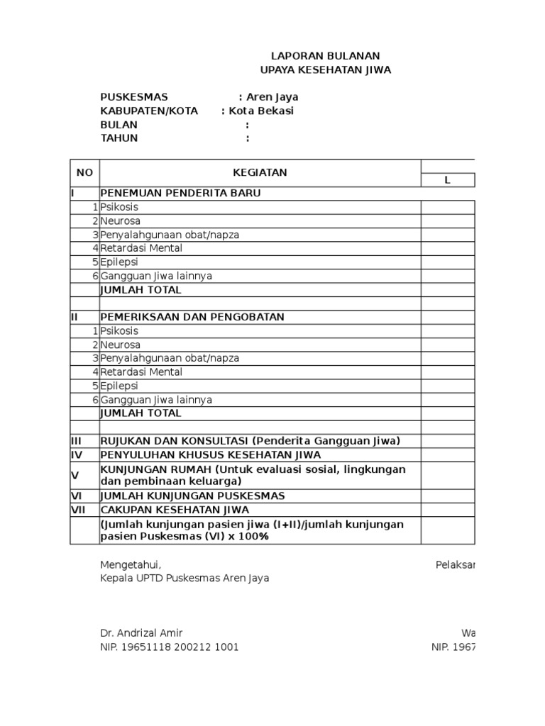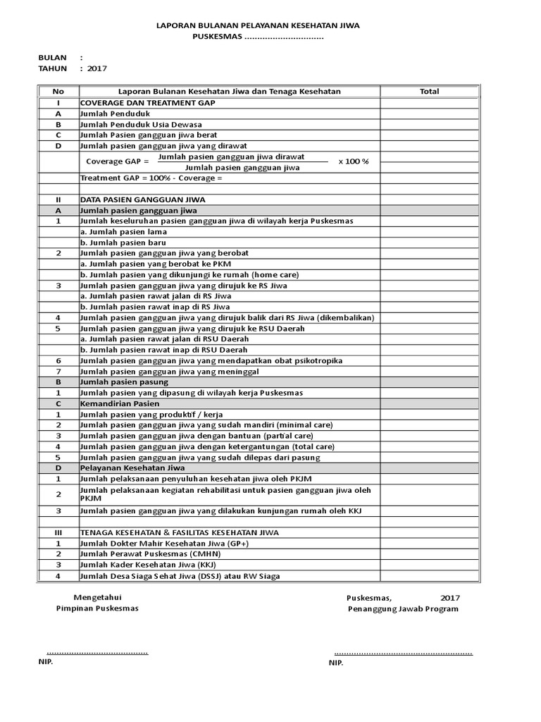 Form Laporan Jiwa Khusus Puskesmas Pdf